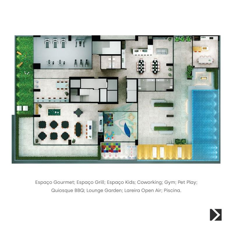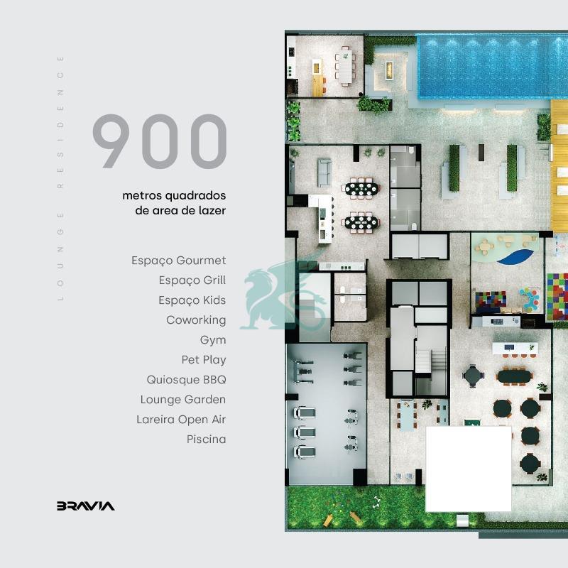 O LOUNGE RESIDENCE foi idealizado e projetado para oferecer uma experiência completa aos seus residentes, para que possam não apenas MORAR no edifício e na região, mas realmente VIVER, com qualidade de vida, praticidade e requinte. E para a comodidade e bem estar de seus moradores, o empreendimento conta com 900 m² de área de lazer, composta por: espaço gourmet, espaço grill, espaço kids, academia, pet play, quiosque BBQ, lounge Garden, lareira open air e piscina.