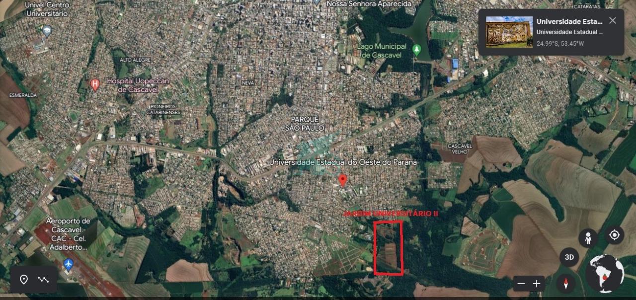 Próximo à UNIOESTE - Universidade Estadual do Oeste do PR, o JARDIM UNIVERSITÁRIO II dispõe de fácil acesso à Avenida Carlos Gomes, bem como à rodovia BR 277, e ainda conta com a comodidade de toda a estrutura comercial do Bairro Universitário.