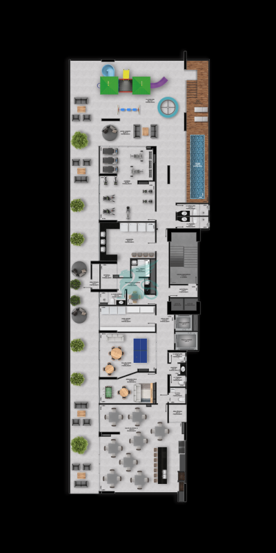 Condomínio conta com: piscina com aquecimento elétrico, salão de festas, sala de jogos, brinquedoteca, lavanderia coletiva, mini mercado, academia, playground